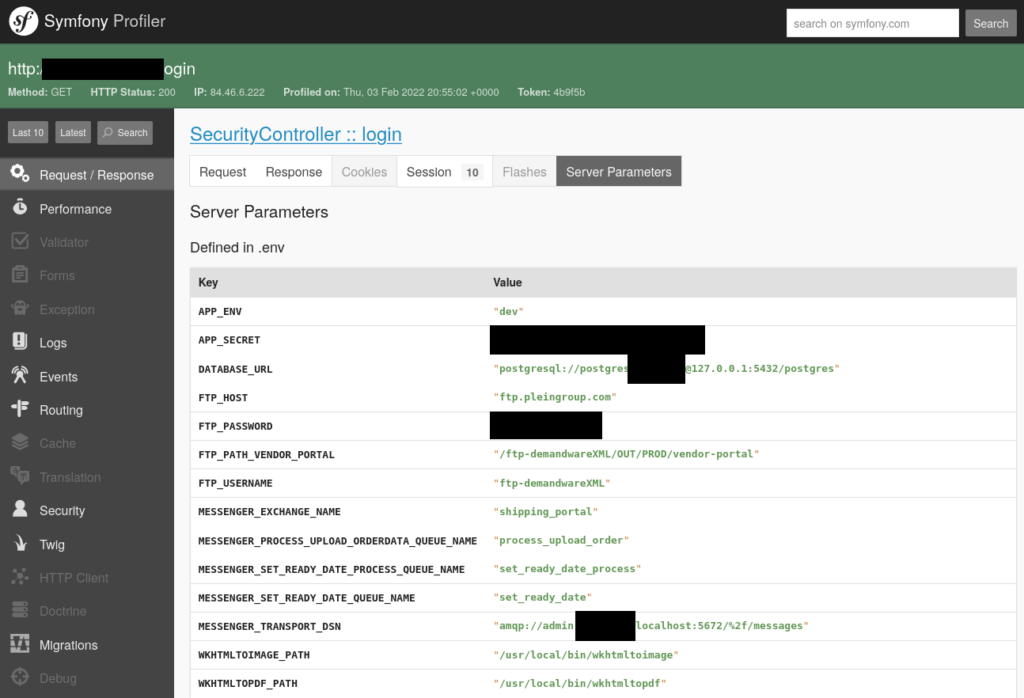Bereits 2021 war beim Crypto King Philipp Plein ein Symfony Profiler für alle zugänglich im Netz. Ich rief dort an, schrieb E-Mails, kontaktierte den Chief Digital Officer via Linkedin, meldete mich beim GovCERT in der Schweiz und bei der Berliner Datenschutzbehörde ‒ lange passierte nichts. Erst 2022 oder später verschwand der Profiler aus dem Internet.